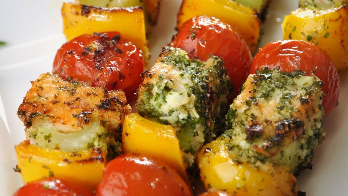 Filet z łososia z wędzonymi krewetkami w kremie szpinakowym